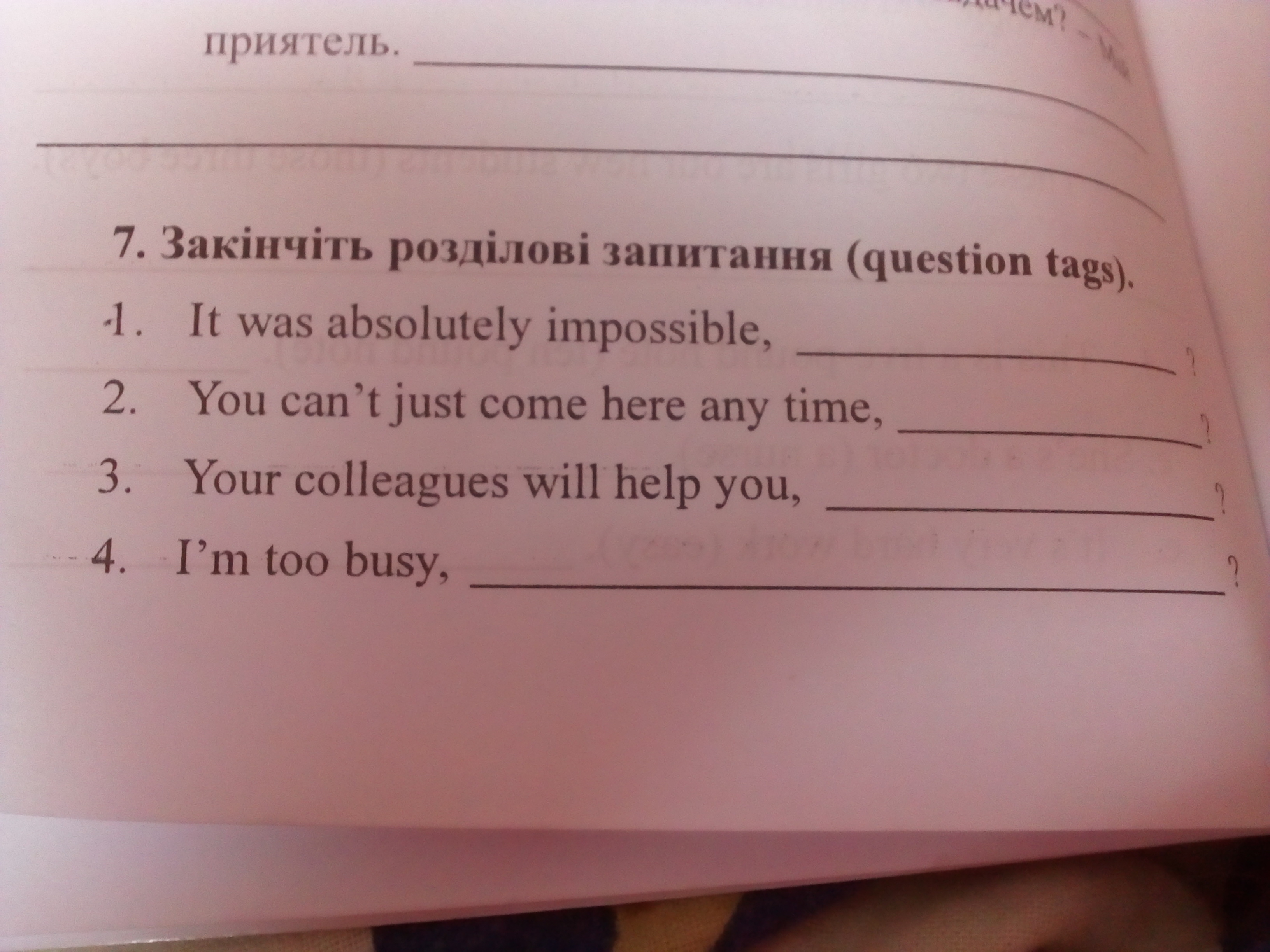 1 - wasn't it, 2 - can you, 3 - won't they, 4 - aren't I