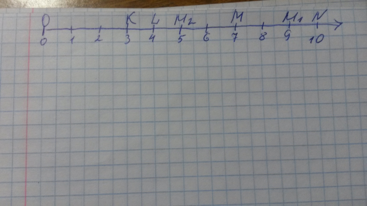начертите координатный луч и отметьте на нем точки M(7),N(10),K(3),L(4),если единичный отрезок равен 1 см. на этом же луче отметьте точки,которые удалены от точки M на 2. каковы координаты этих точек?