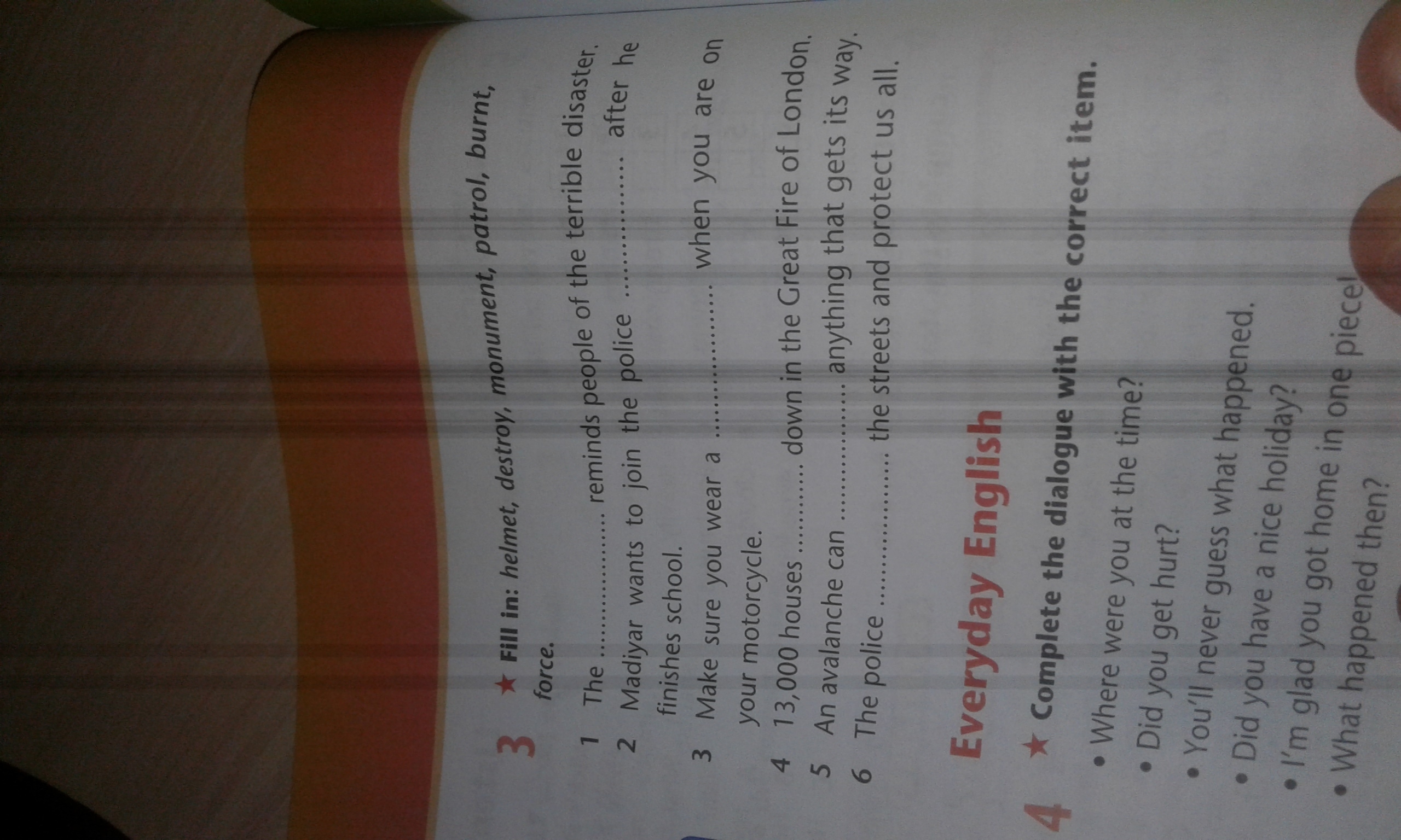 1. monument 2.force 3.helmet 4.burnt 5. destroy 6.patrol