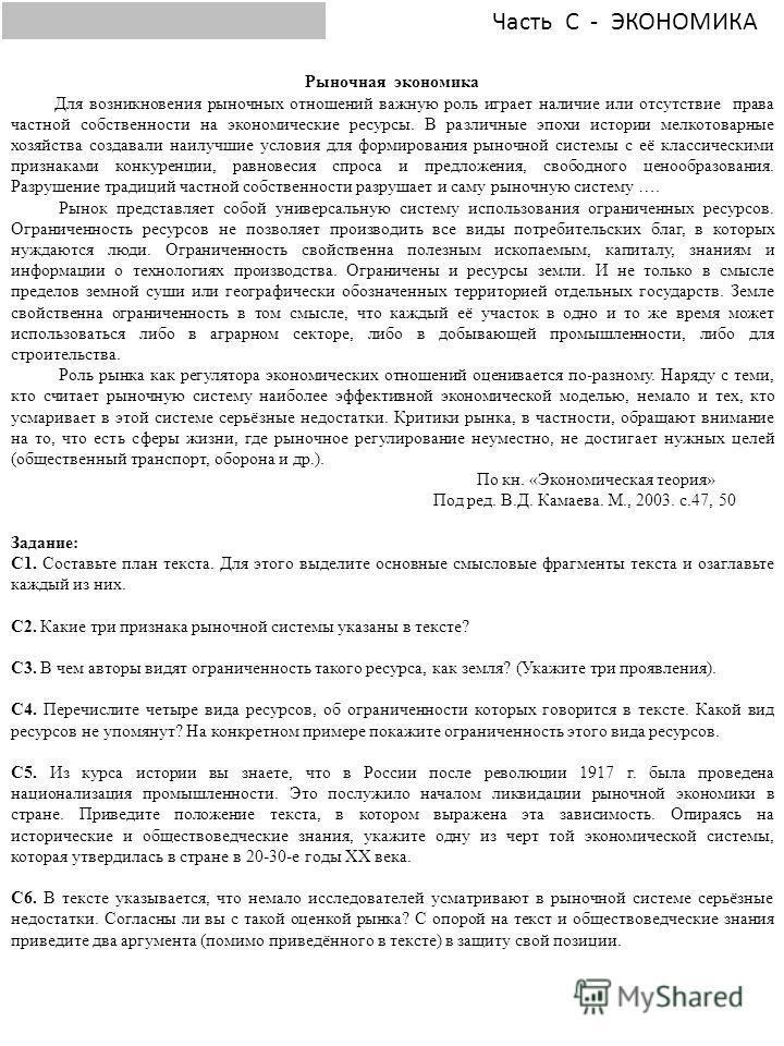 С1: - признаки рыночной экономики