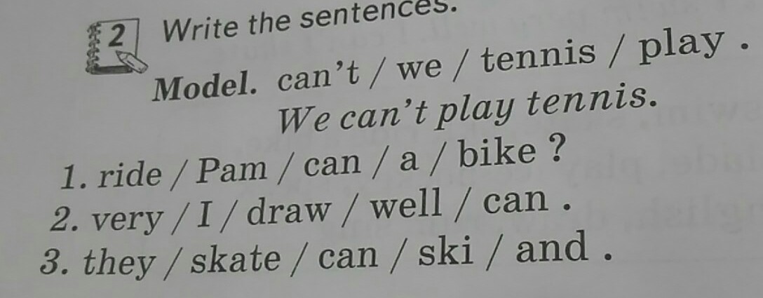 Can Pam ride a bike? I can draw very well. They can skate and ski.