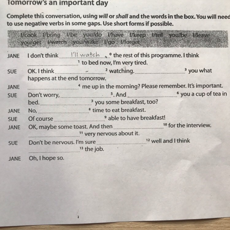 (Jane) Wake me up in the morning? Please remember. It’s important.