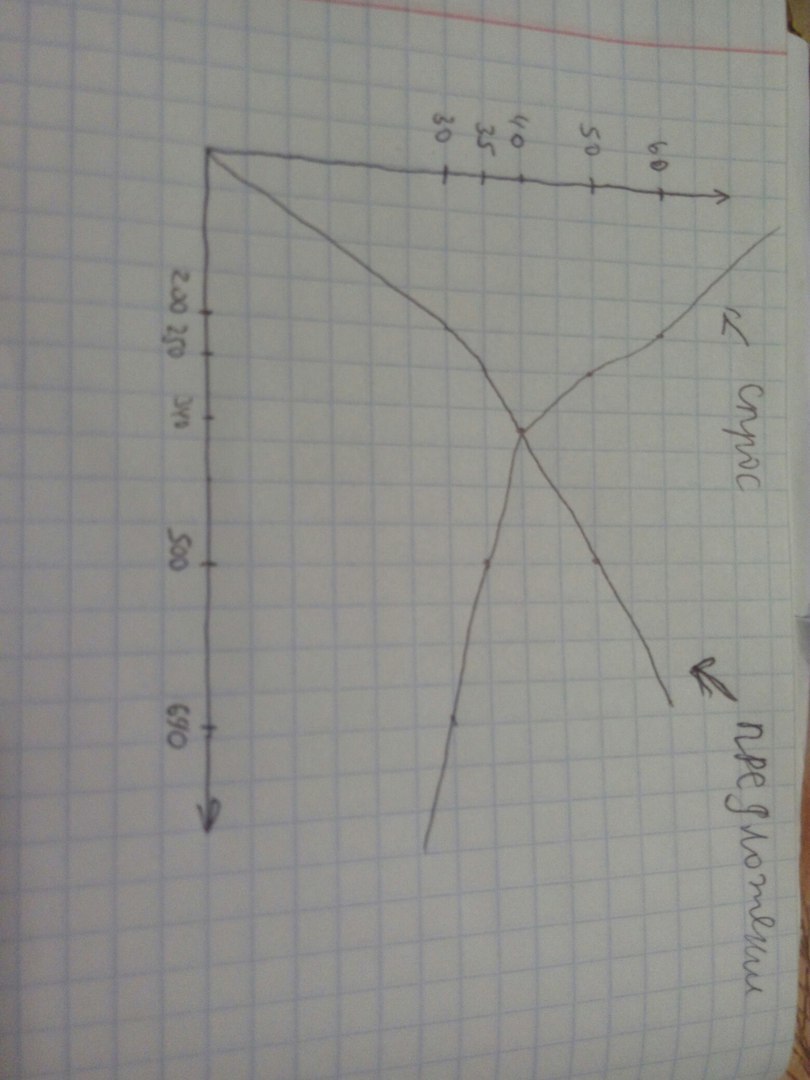 Составим график, где слева будет цена, а снизу количество. Далее проставим наши числа и соединим их