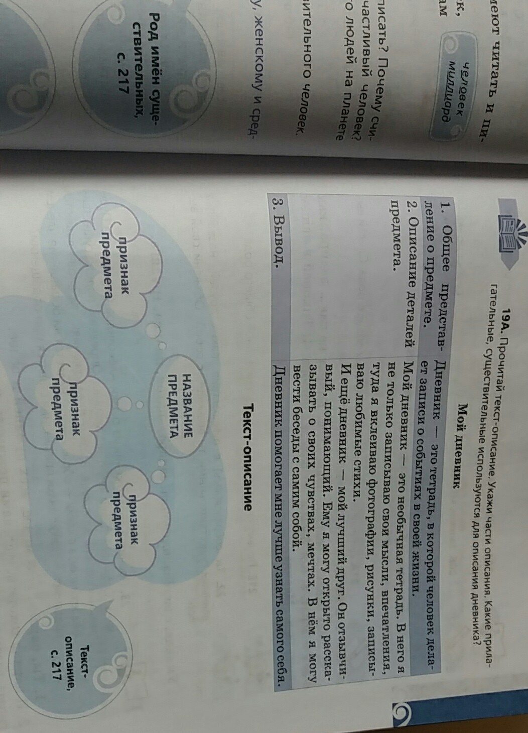 Прочитай текст описание. Укажи части описания. Какие прилагательные, существительные используются для описания дневника