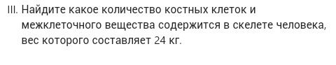 Ответ: межклеточное вещество составляет 16 кг, а костная клетка 8 кг.
