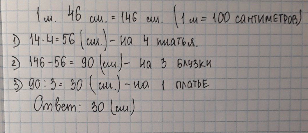 3) 90÷3=30(см) на 1 блузку