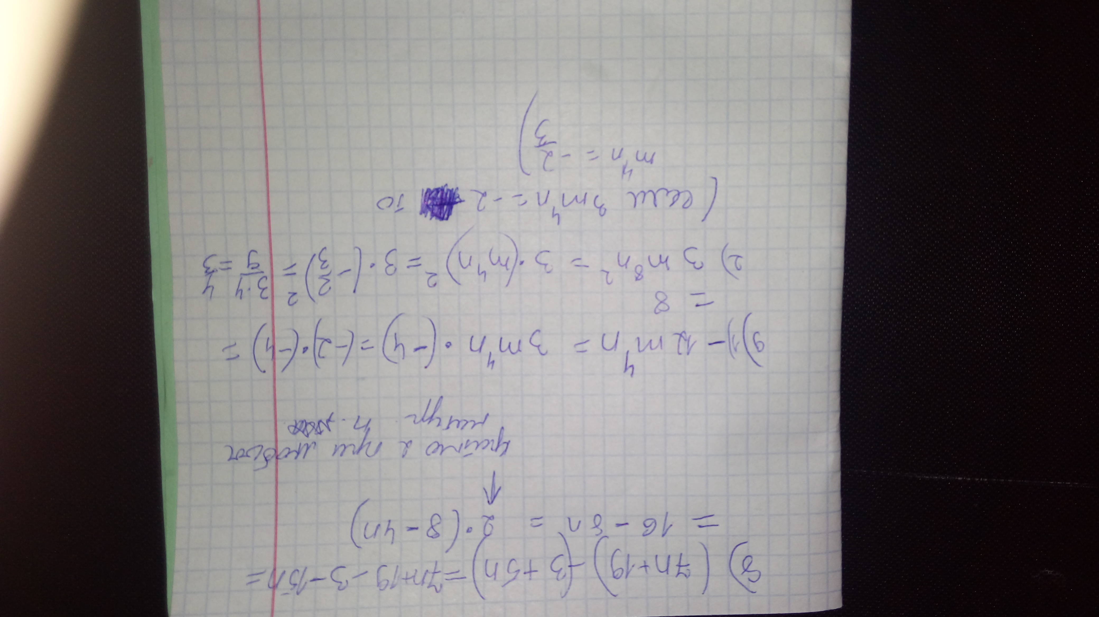 Я там в скобках написала 3m^4n= 2 значит m^4n=-2/3.