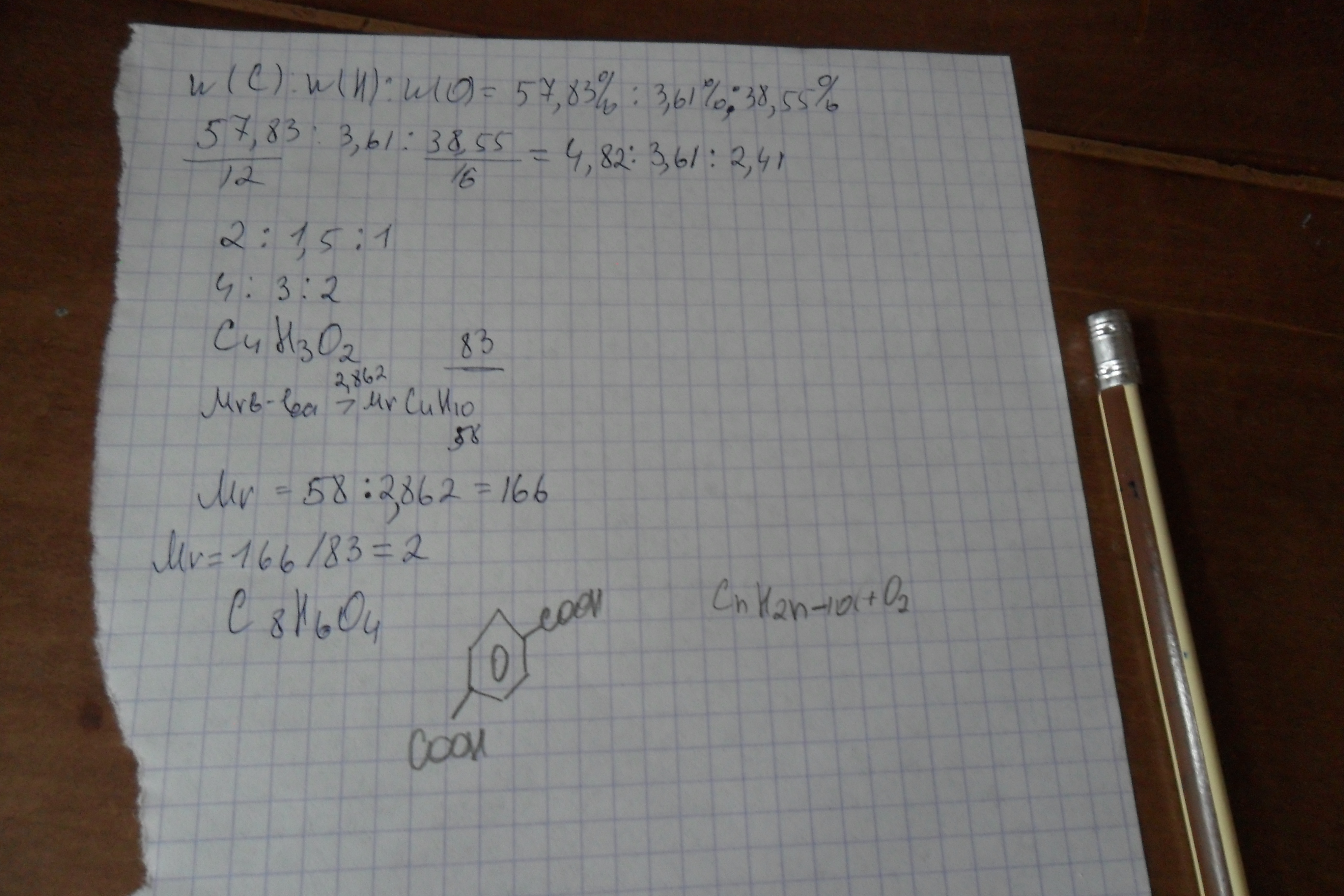 3.Установите молекулярную формулу вещества, если массовые доли в нем углерода, водорода и кислорода равны соответственно: 57,83%; 3,61% и 38,55%. Молярная масса этого вещества в 2,862 раза больше молярной массы бутана. Предложите одну структурную формулу этого соединения.