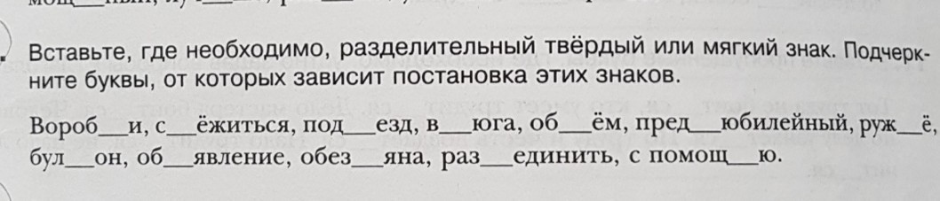 Вставьте где необходимо разделительный твердый или мягкий знак подчеркните буквы от которых зависит постановка этих знаков