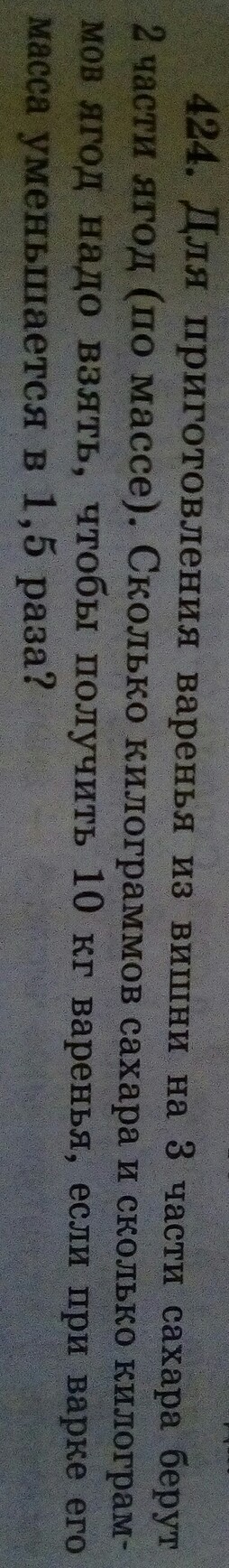 ...... Для того, что бы получить 10 кг варенья... Нужно взять 9 кг сахара и 6 кг вишни. Понятно ?