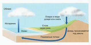 Круговорот воды в природе-это процесс циклического перемещения воды в земной биосфере.Состоит из испарения воды в океанах и морях.