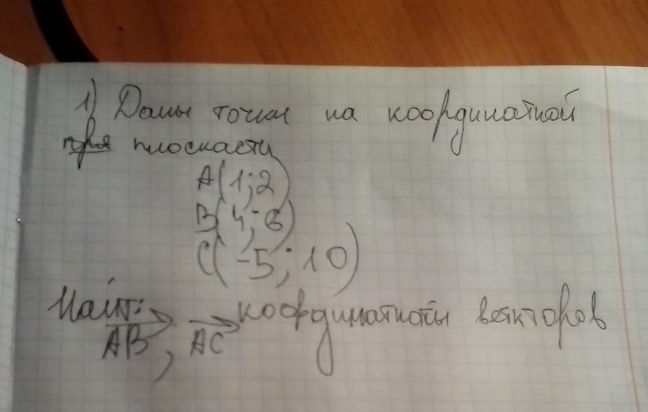 даны точки на координатной плоскости. А 1;2 точка B 4;6. c -5;10 Найти координатный Вектор AB,АС