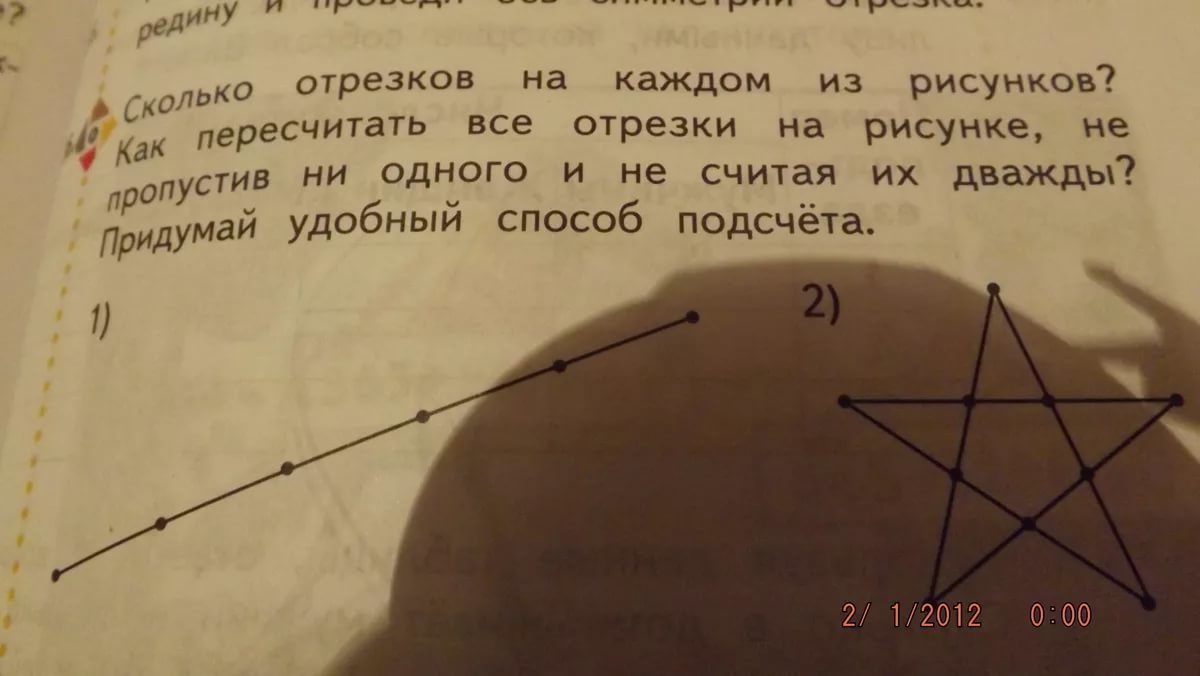 сколько отрезков на каждом из рисунков как пересчитать все отрезки на рисунке не пропустив ни одного и не считая их дважды придумай удобный способ подсчета