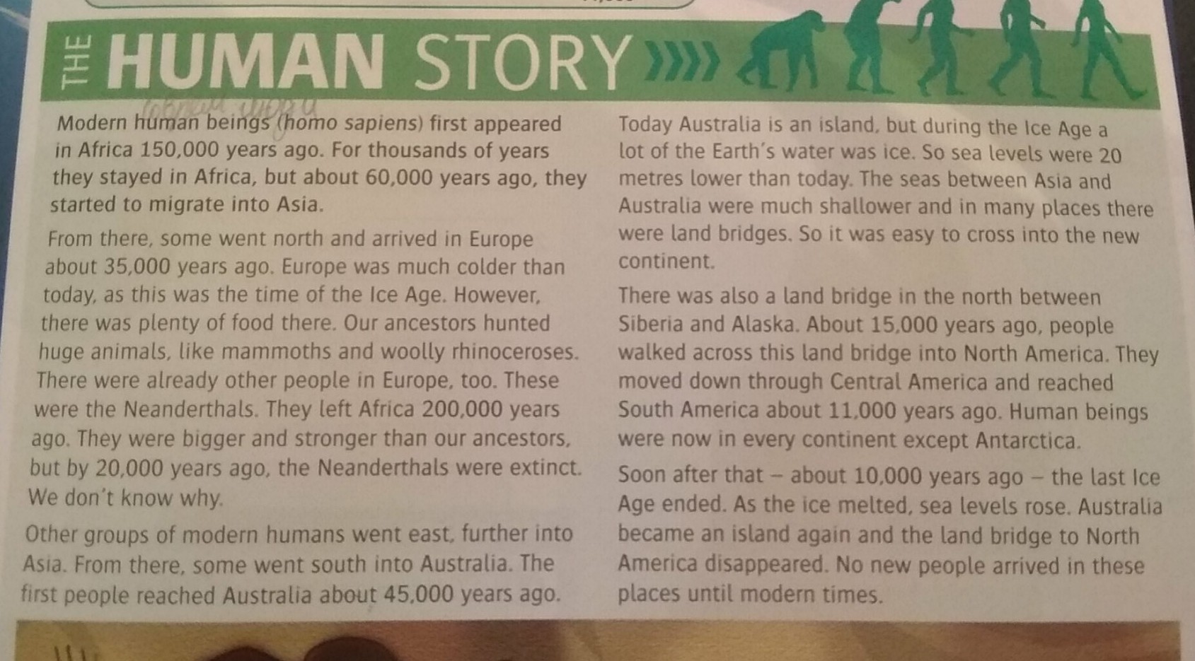 EHUMAN STORY Modern human beings (homo sapiens) first appeared Today Australia is an islan... Ещё