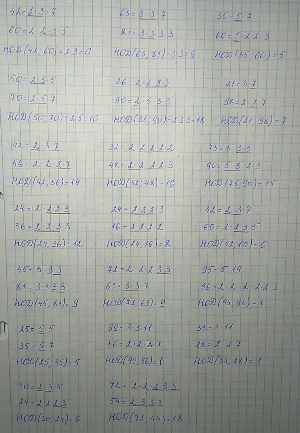 НОД 42;60, 63;81, 35;60, 50;70 36;90 21;98 42;56 32;48 75;90 24;16 24;36 42;60 45;81 72;63 95;96 25;35 99;56 33;28 30;24 72;54