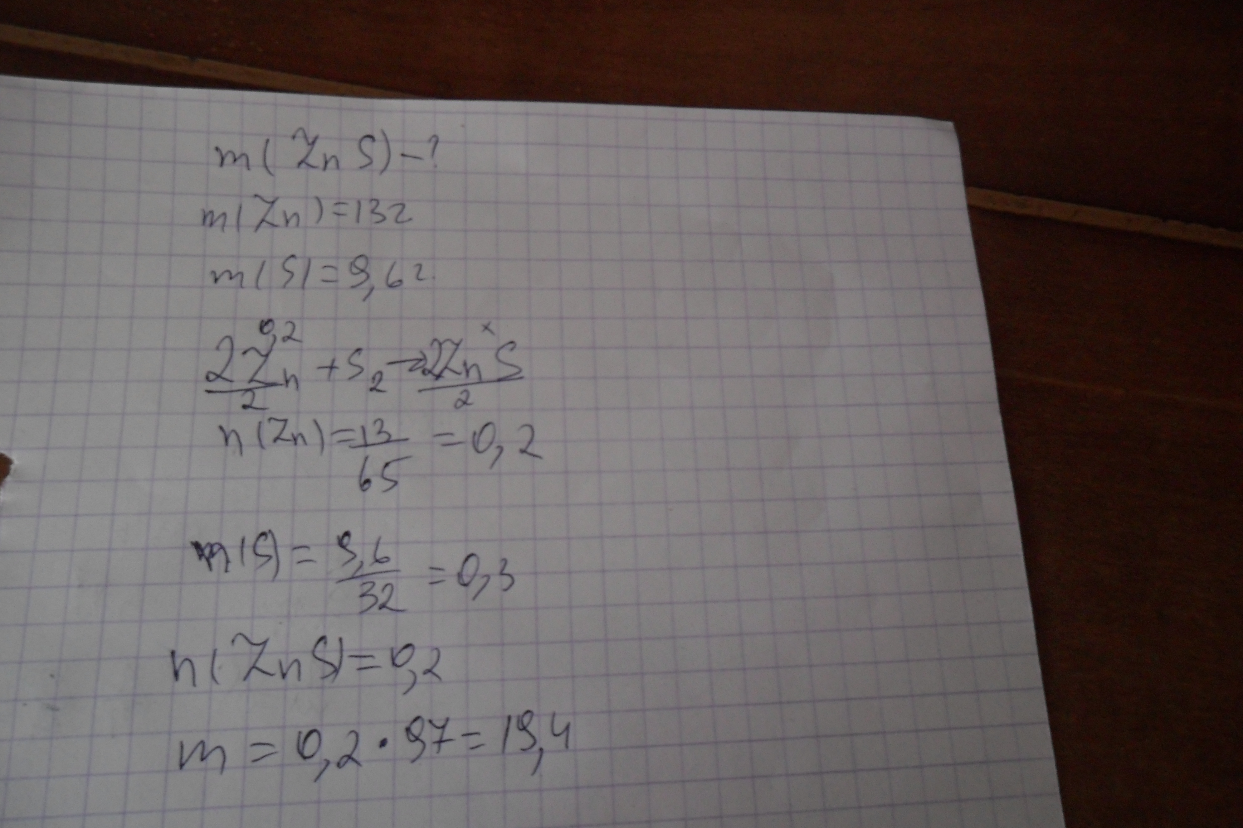 Вычислите массу сульфида цинка, образующегося при взаимодействии 13г цинка с 9,6г серы. Запишите число с точностью до десятых цинка. Спасибо огромное)