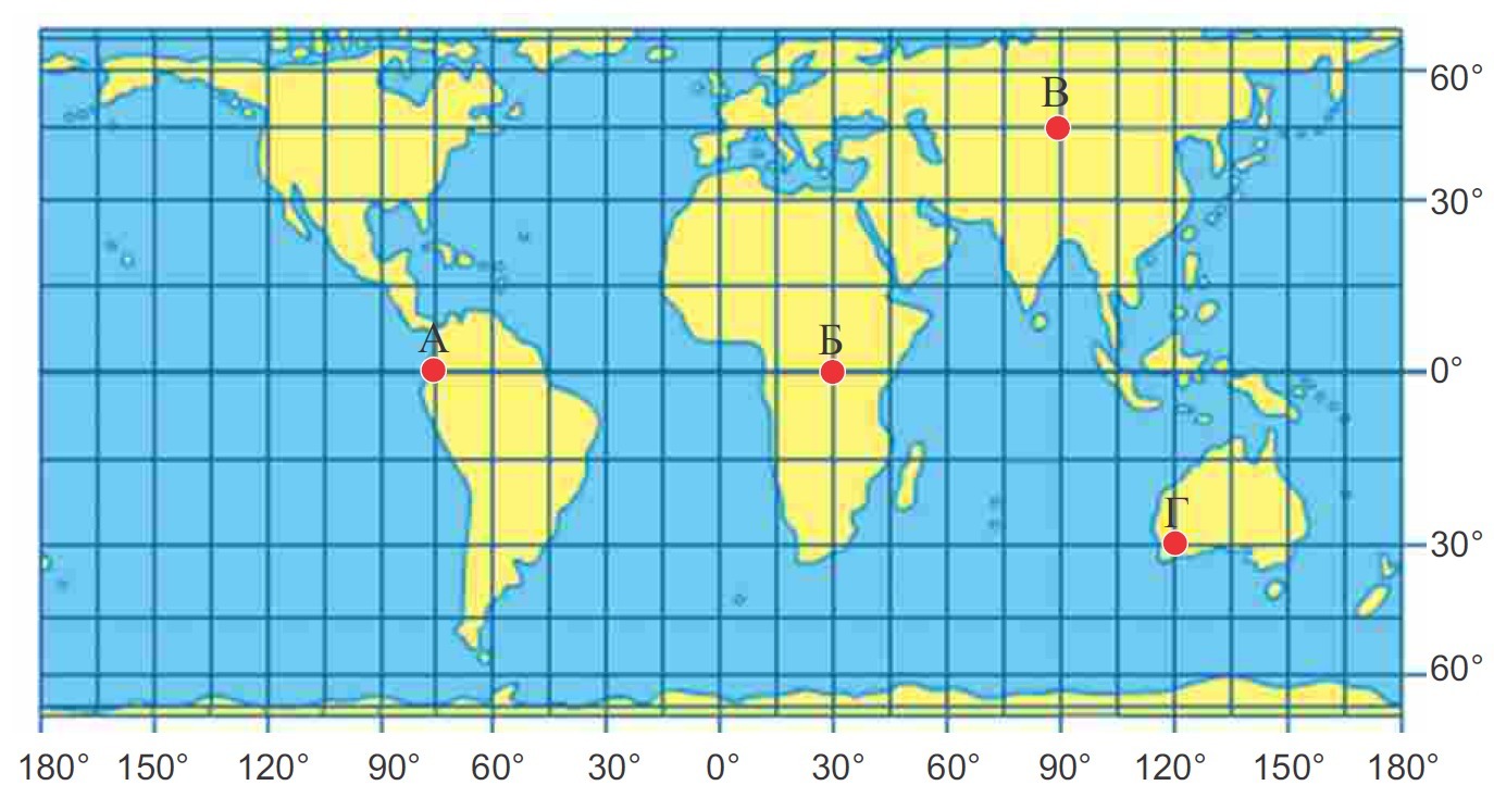 Используя градусную сетку, определите расстояние в километрах между точками А и В.