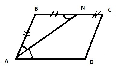 Рассмотрим ΔABN ∠BNA=∠NAD как накрест лежащие при BC║AD, значит ∠BAN=∠BNA, ⇒ΔABN равнобедренный, АВ=BN. Пусть АВ=СD=х, тогда ВС=AD=2х