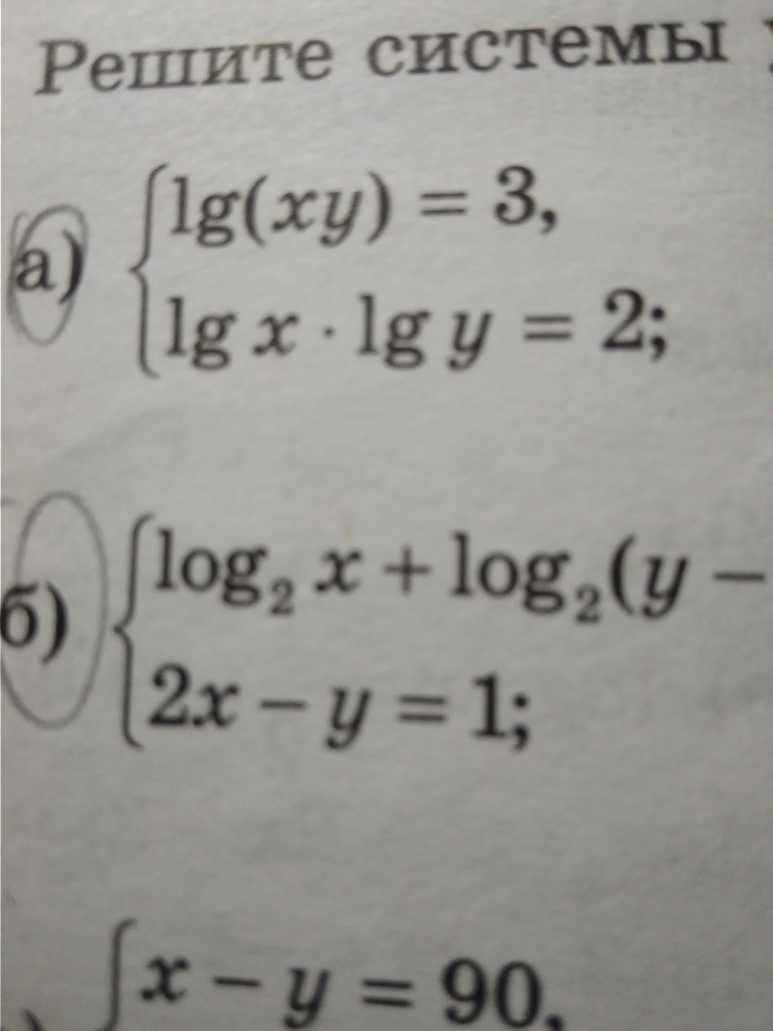 решите систему логарифмических уравнений а)