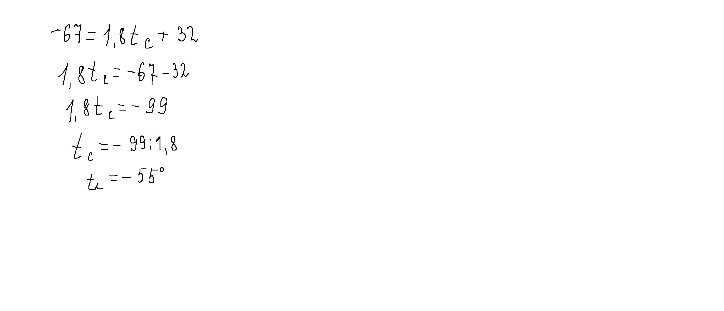 -67 градусам по Форенгейту соответствует - 55 градусов по Цельсию