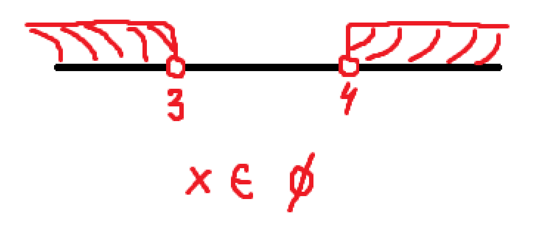 Ответ: пустое множество. Нельзя подобрать такие x, которые будут меньше трёх и больше четырёх.