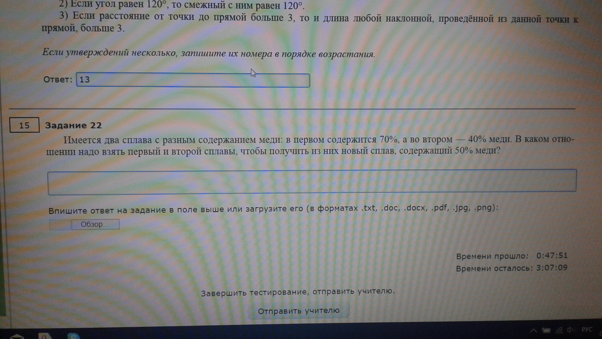 Соотношение 1:2 то есть надо взять одну часть первого сплава и две части второго.