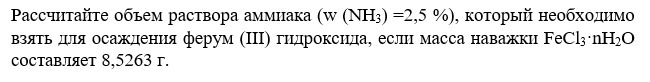 V(p-pa NH3·H2O) = 123,9/0.9501 = 130,41 мл