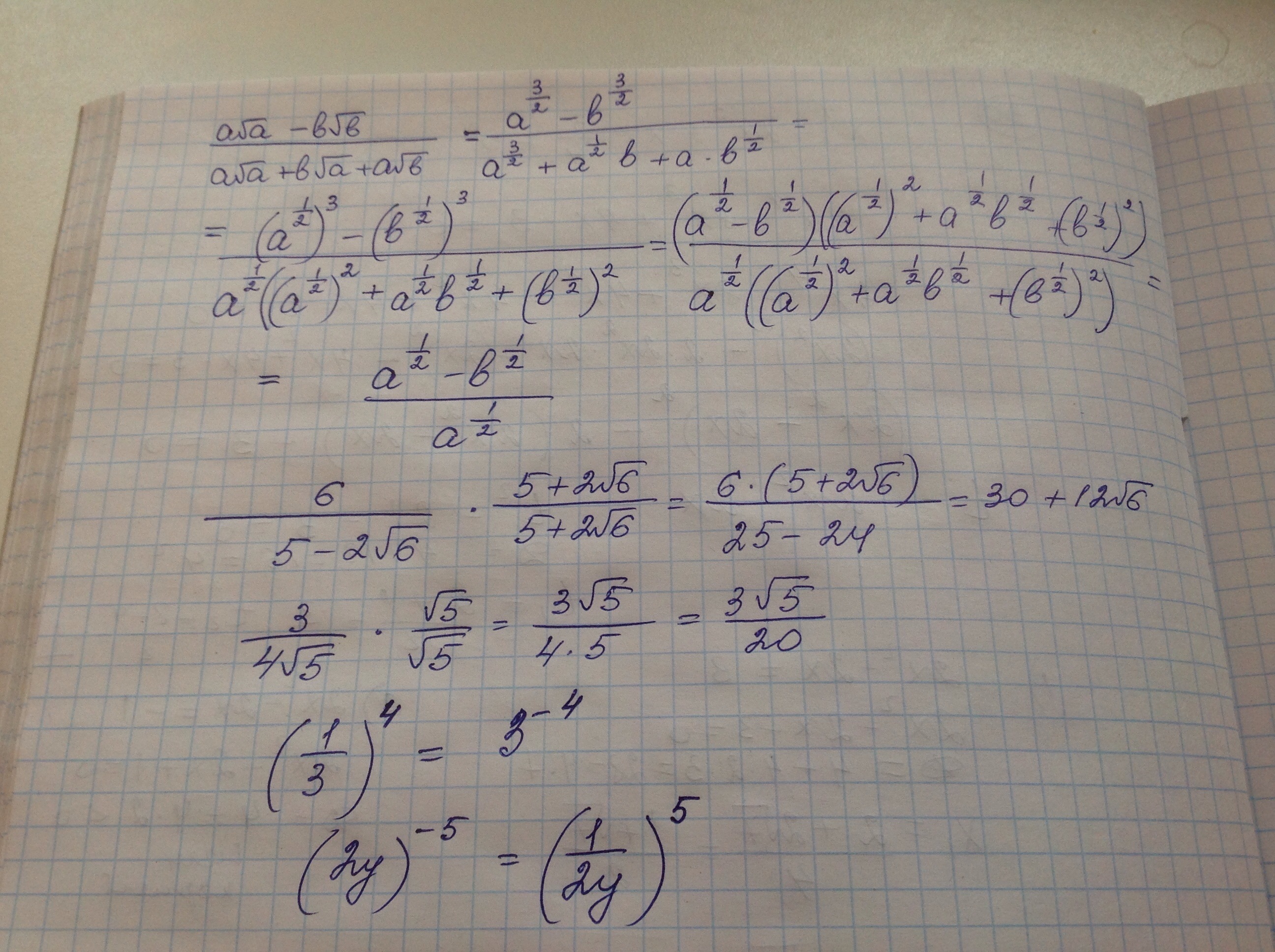 (a√a - b√b) /(a√a +b√a +a√b) = ((√a)³ -(√b)³) / ( √a (a +b +√a*√b) ) =