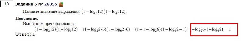 используем формулу перехода к новому основанию : Log(6)2= Log(2)2/Log(2)6=1/Log(2)6. -Log(2)6*(-1/Log(2)6)=Log(2)6/Log(2)6=1.