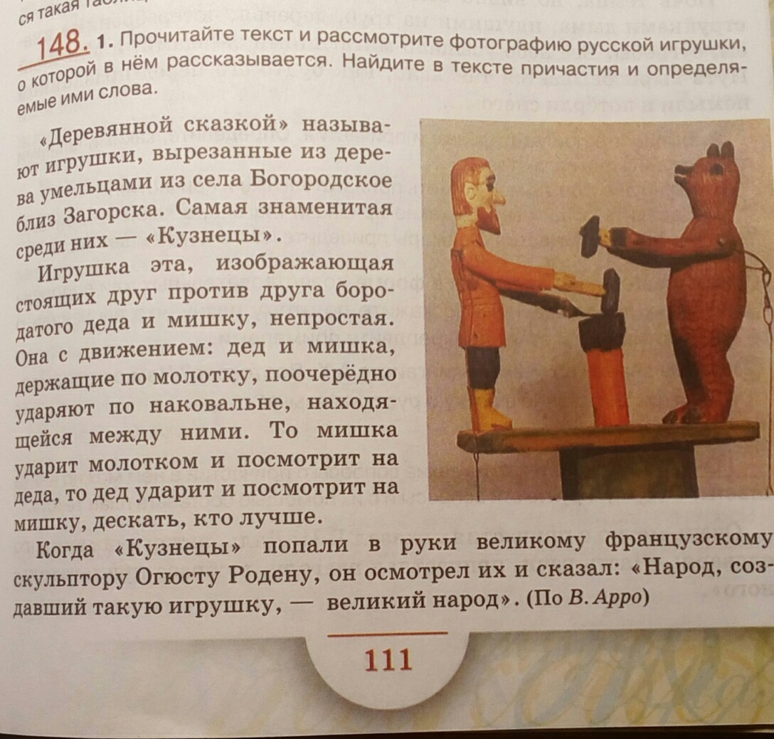 1-Определяемое слово- игрушки,(2-причастие)вырезанные;1-игрушка эта,(2)изображающая; (1)дед и мишка,(2)держащие;(1)наковальней,(2)находящейся; (1)народа,(2)создающий