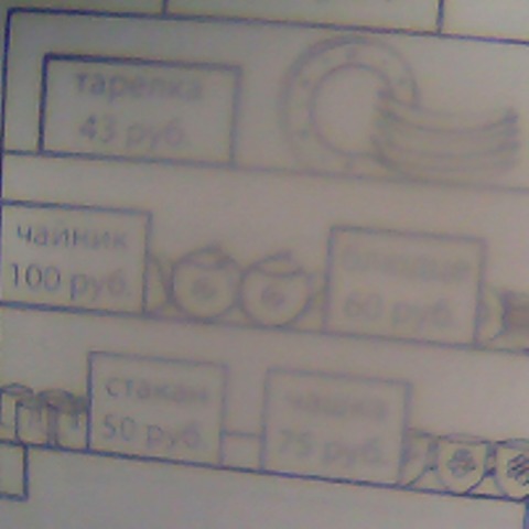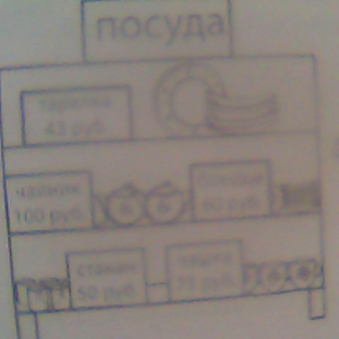 Рассмотри рисунок и ответь на вопрос: сколько рублей сдачи получит покупатель, расплатившийся за одну тарелку и один стакан купюрой в 100руб.?