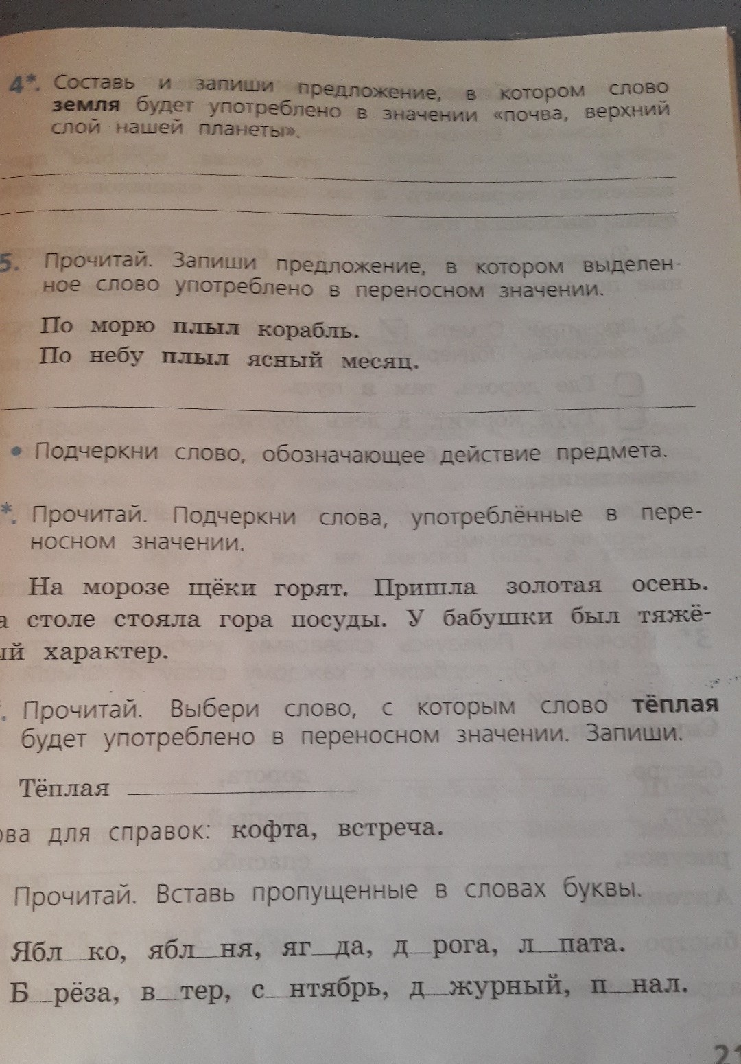 5.По небу плыл(действие предмета) ясный месяц