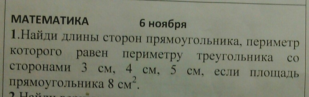 Периметр прямоугольника , как и у треугольника , равен 3+4+5=12 см