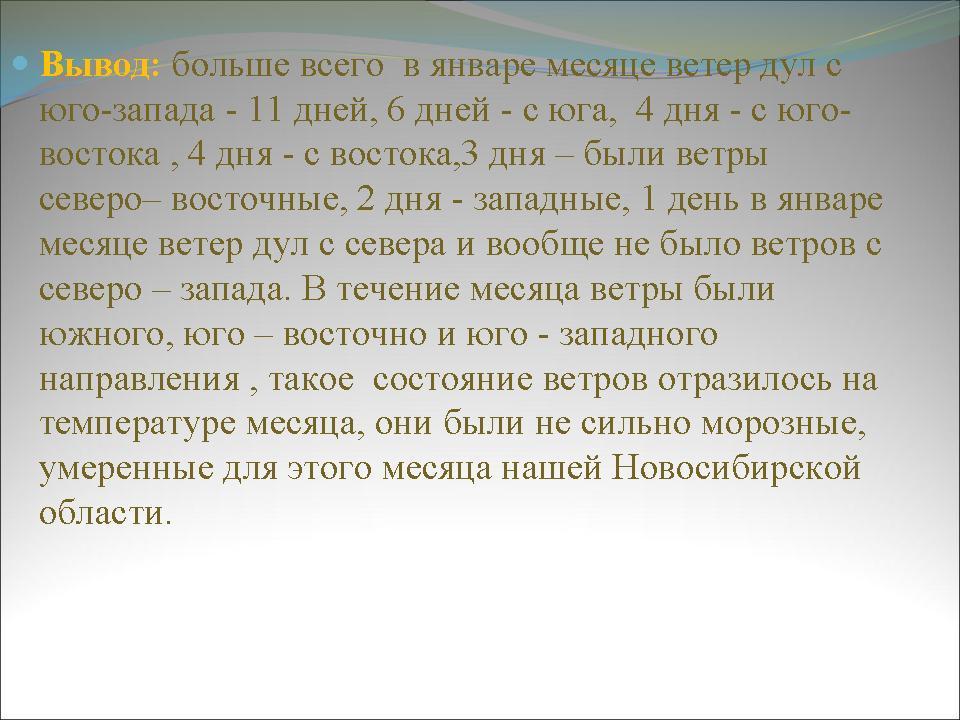 в первом пишешь названия ветров какие были в течение месяца например: юго-западный,северо-восточный