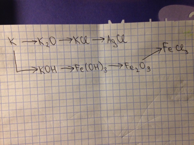 5). 3KOH+FeCl3=Fe(OH)3+3KCl.