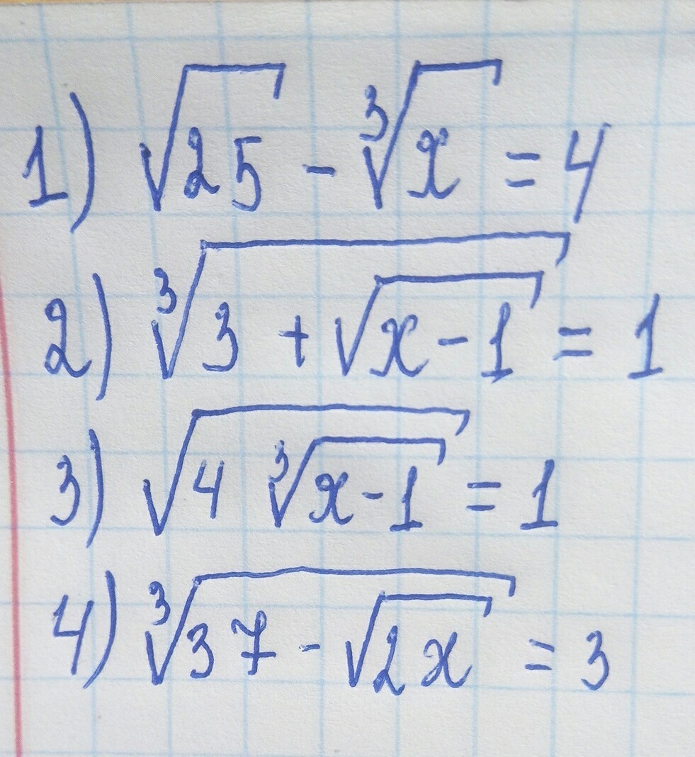 \x=1^3=1](https://tex.z-dn.net/?f=5-sqrt%5B3%5D%7Bx%7D%3D4%0A%5Csqrt%5B3%5D%7Bx%7D%3D1%0A%5Cx%3D1%5E3%3D1)