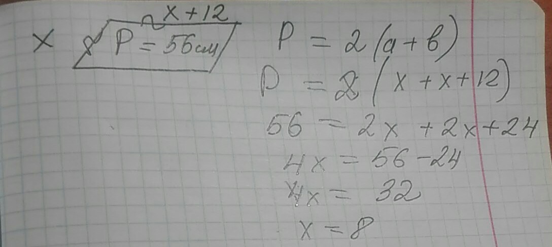 одна из сторон параллелограмма на 12 см больше другой, периметр параллелограмма равен 56 см.Найдите смежные стороны этого параллелограмма