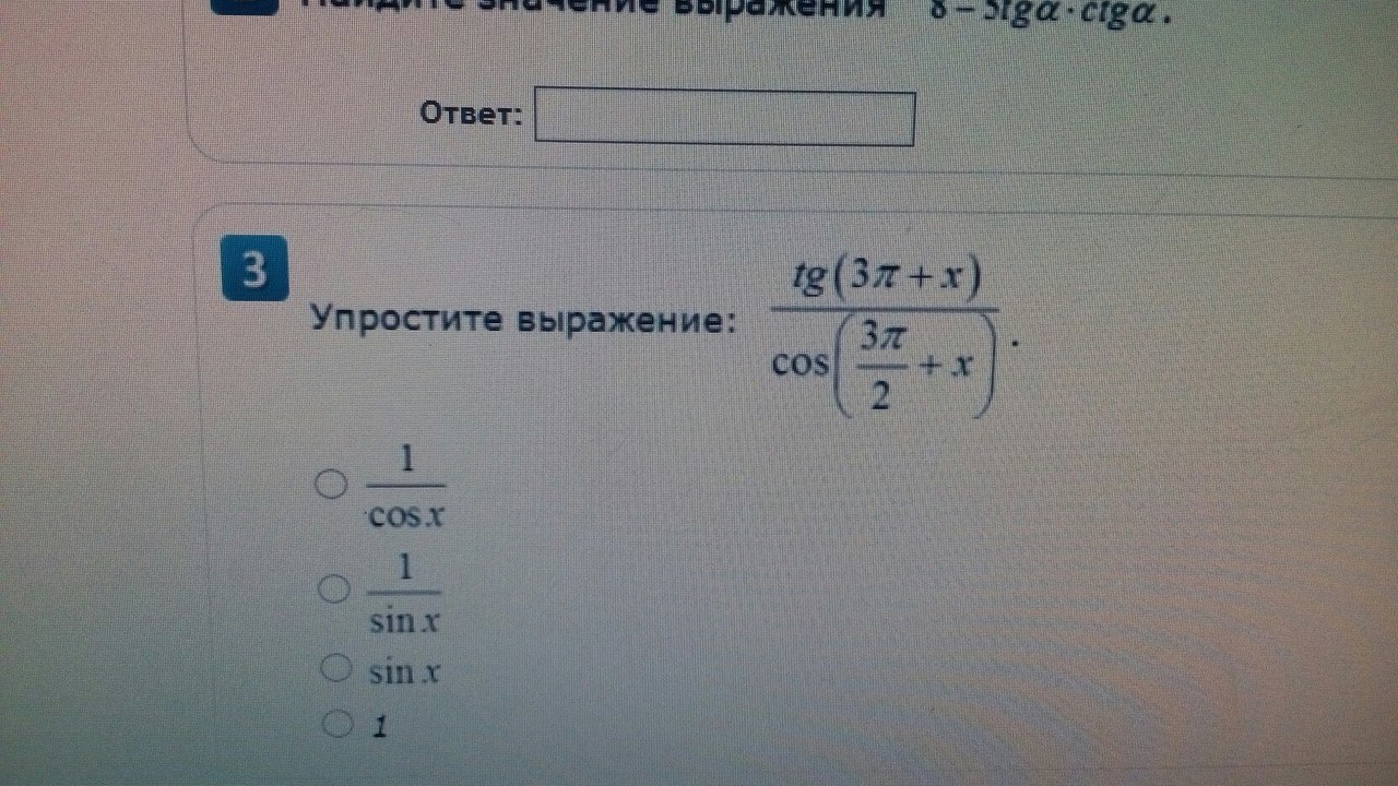 tg x : sin x = sin x|cos x : sin x = 1/cos x
