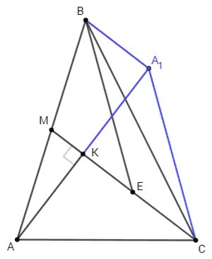 На медиане CM треугольника ABC обозначили точки K и E так, что угол AKM = 90 градусов, и CE = 2MK.