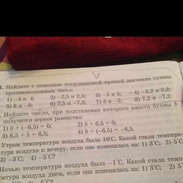 Найдитесь с помощью координатой прямой значение суммы противоположных чисел