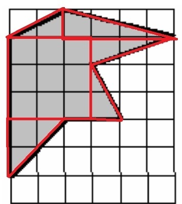 фигуру можно разделить на квадрат 3*3 и прямоугольные треугольники, площадь которых равна половине произведения катетов.