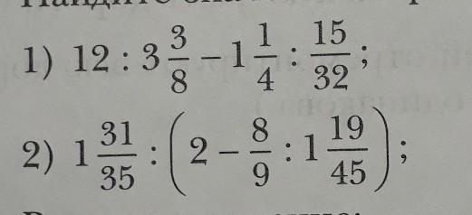 12 : 3 3/8 - 1 1/4 : 15/32 = 8/9