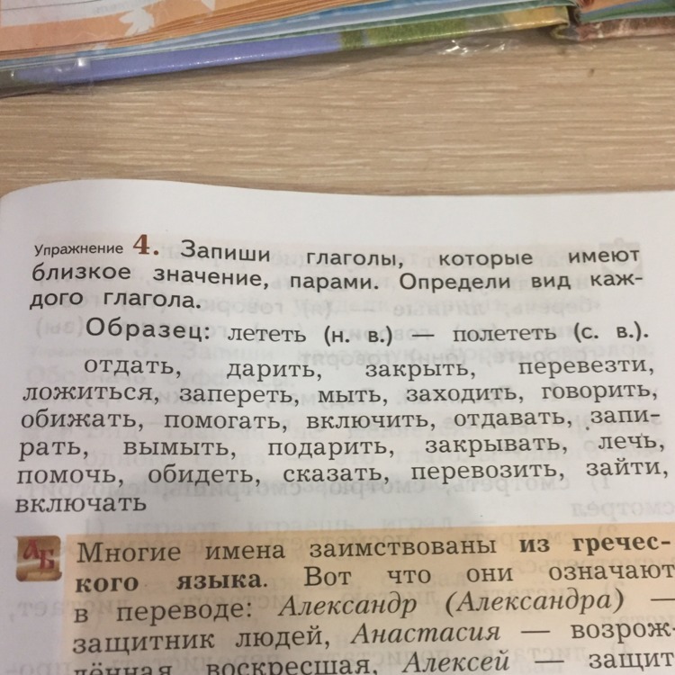 Отдать (с. в.) - давать ( н. в.), дарить ( н. в.) - подарить (с. в.), закрыть ( н. в.) - закрывать (с. в.), перевезти (с. в.) - перевозить (н. в.), ложиться (с. в.) - лежать( н. в.), запереть( с. в.) - запирать( н. в.), мыть ( н. в.) - помыть ( с. в.), говорить (н.в.) - проговорить (с. в.), обижать ( н. в.) - обидеть (с. в.),