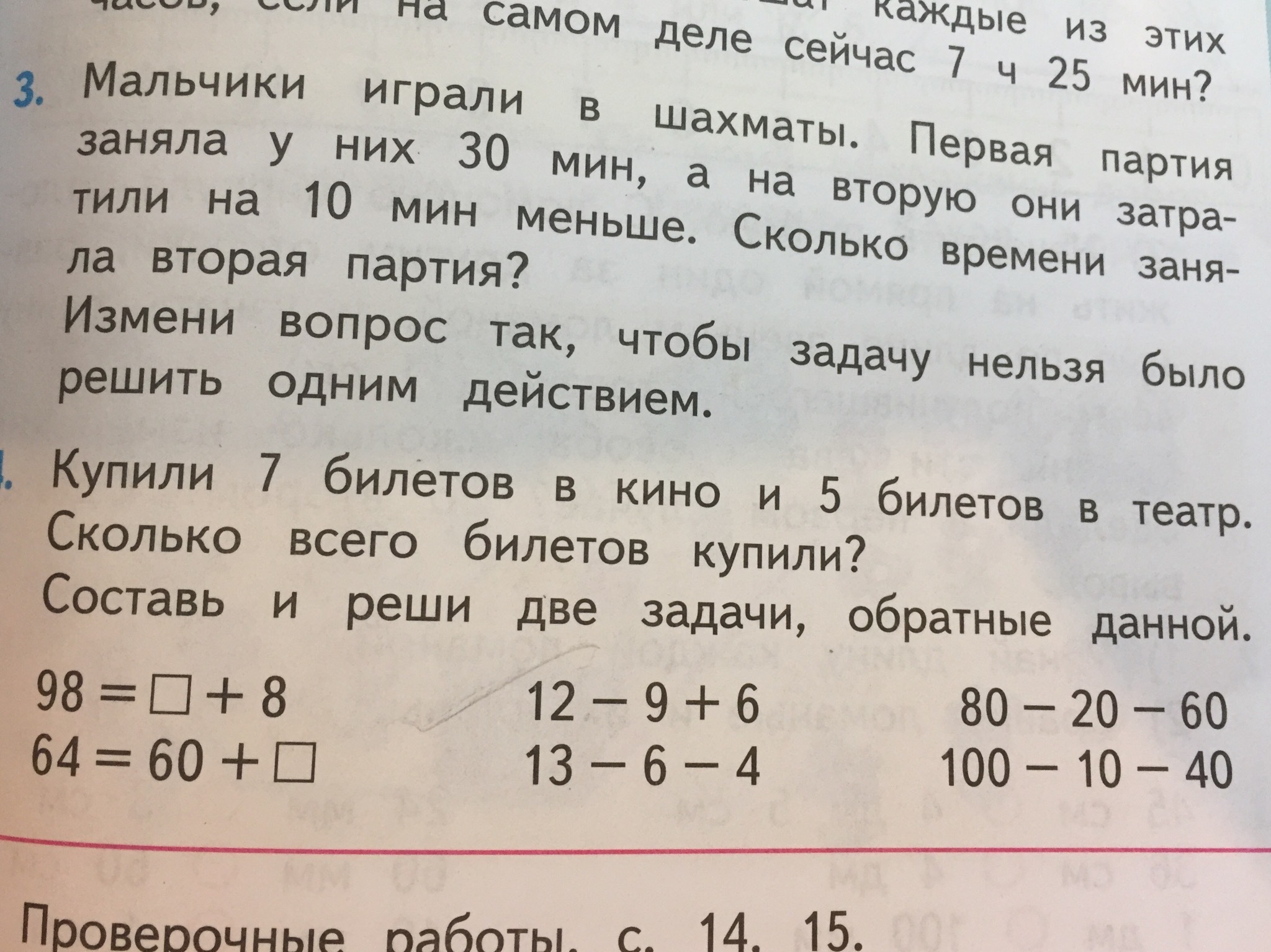 Было 7 билетов в кино, всего 12 билетов. Сколько будет билетов в театр?