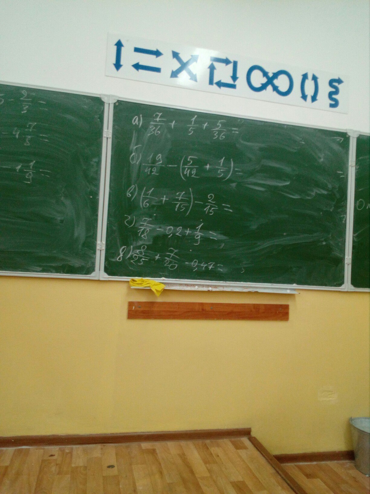 а) 7/36 + 1/5 + 5/36 = 1/5 + (7/36 + 5/36) = 1/5 + 12/36 = 1/5 + 1/3 = 3/15 + 5/15 = 8/15