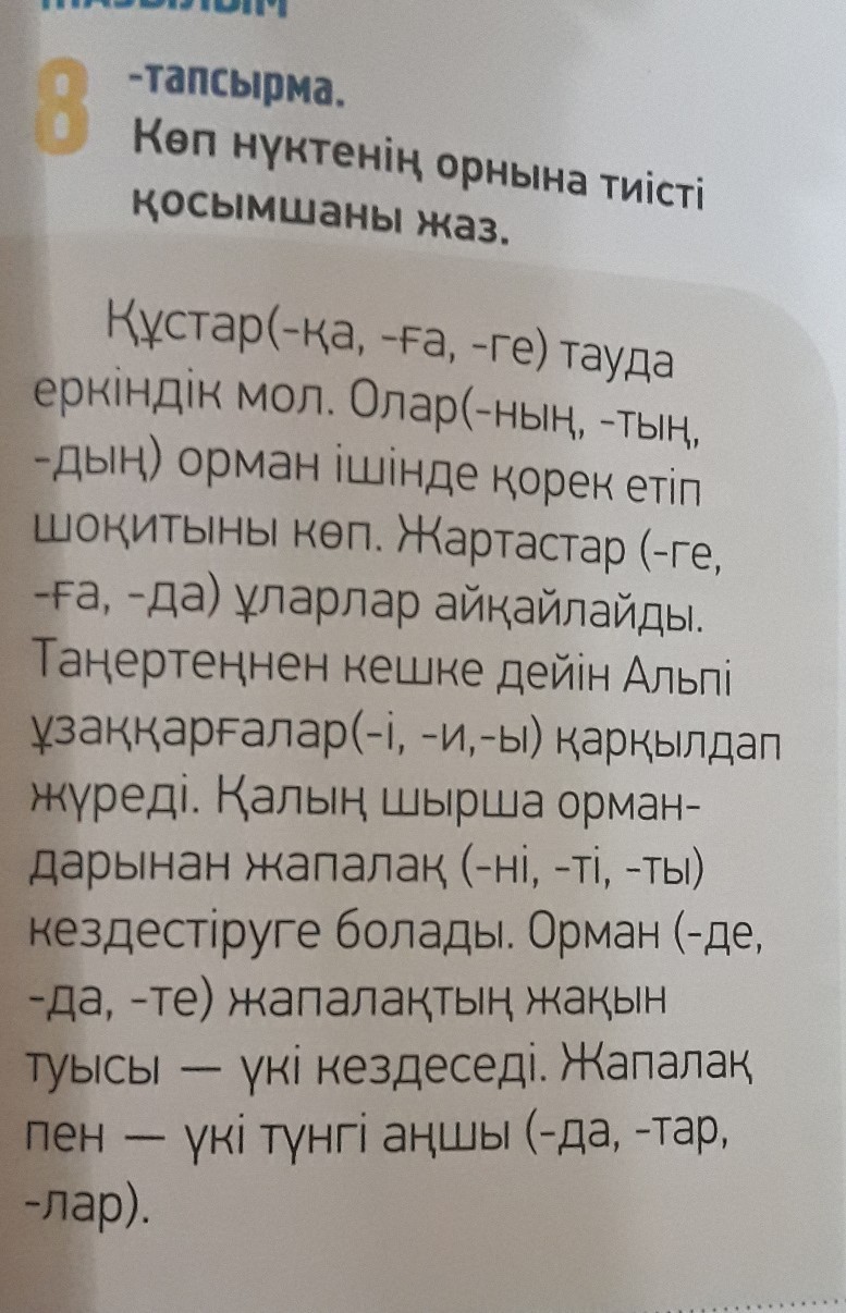 1) ға 2) дын 3)ға4)ы 5)ты6) да7) лар