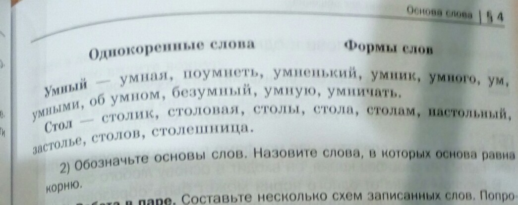 нужно:выпишите в один столбик однокоренные слова, в другой— формы одного и того же слова.