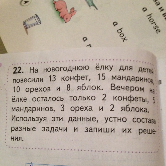 сколько предметов всего сьели дети? 15+8+13+10-5-2-3-2=34