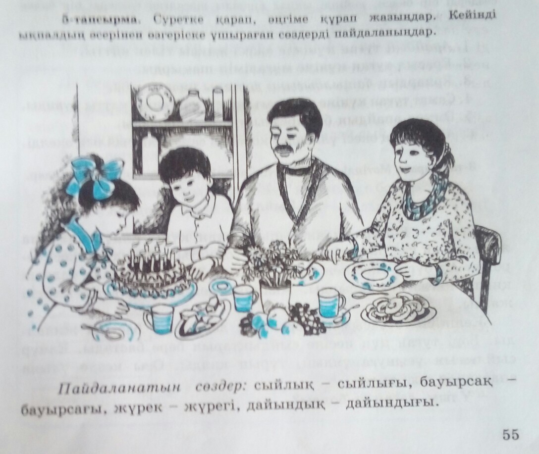 Суретке қарап , әңгіме құрап жазындар. Кейінді ықпалдың әсерінен өзгеріске ұшыраған сөздерді пайдаланыңдар .