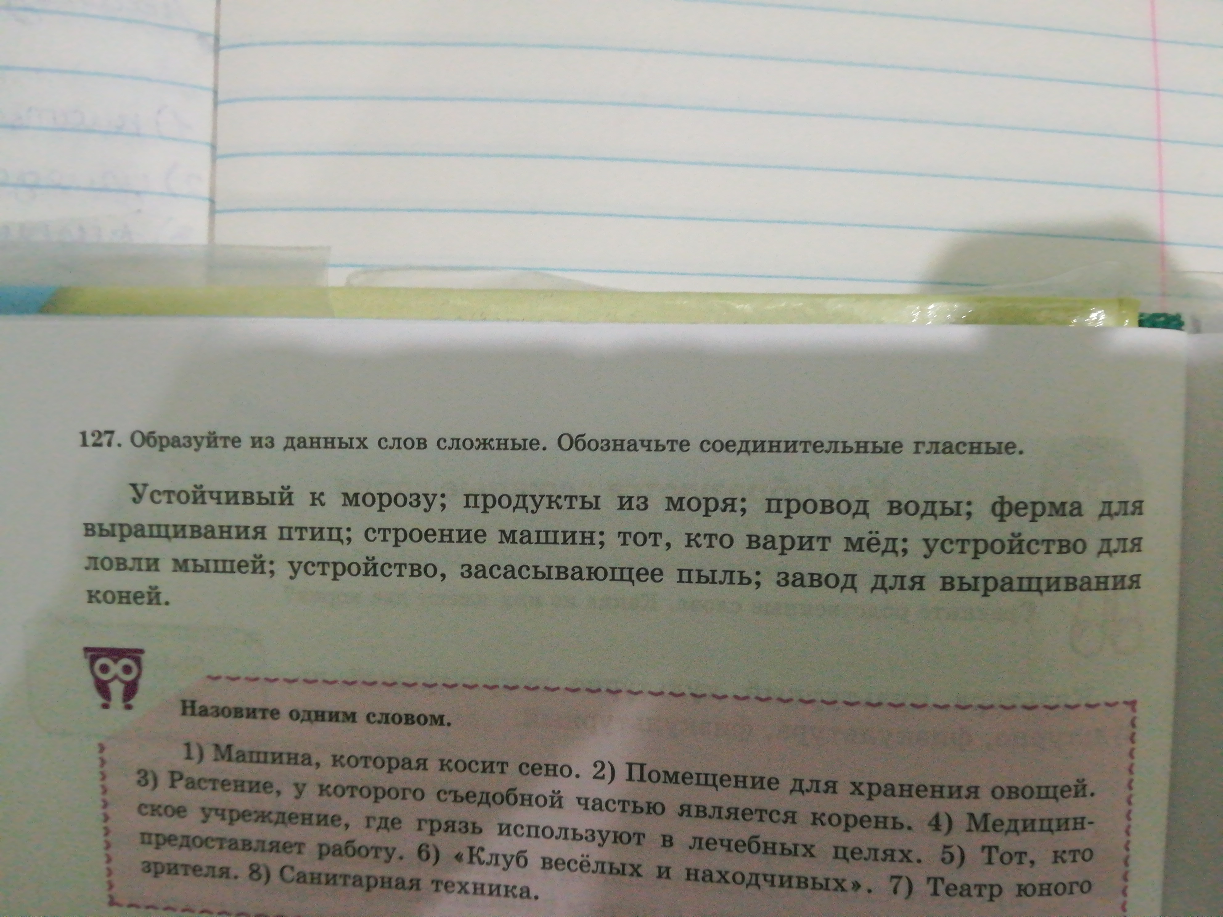 Морозоустойчивый, морепродукты, водопровод, птицеферма, машиностроение, мёдовар, мышеловка, пылесос, конезавод, газонокосилка, овощехранилище, корнеплод, грязелечебница, работодатель, КВН, ТЮЗ, сантехника.